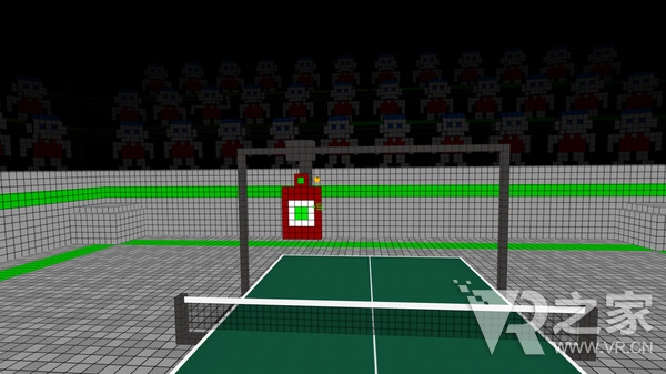 这款游戏表现的则是正统的乒乓比赛。“VR Ping Pong”的整个画面基调与Minecraft非常相似,建模由巨大的方块组成。在游戏中,玩家可以设置乒乓球台的方向,周围的环境,甚至自己绘制比分板上的头像。两名玩家可以联机对战,并使用htc vive控制器将球击入对方把守的区域,进而得分。