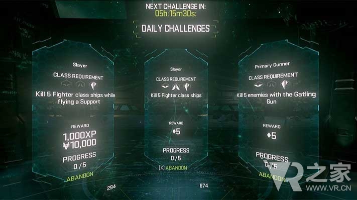 这次更新还加入了两个全新的单机任务,这些任务将涉及《星战前夜:瓦尔基里》的更多故事背景信息,同时玩家可以通过它们锻炼自己的技术以应对在线多人对战。同时他们还加入了每日挑战内容,玩家可以借此筹集必备的资金和物料来提升自己的装备。玩家一次可进行3个挑战,同时玩家每天都可以刷新一次。