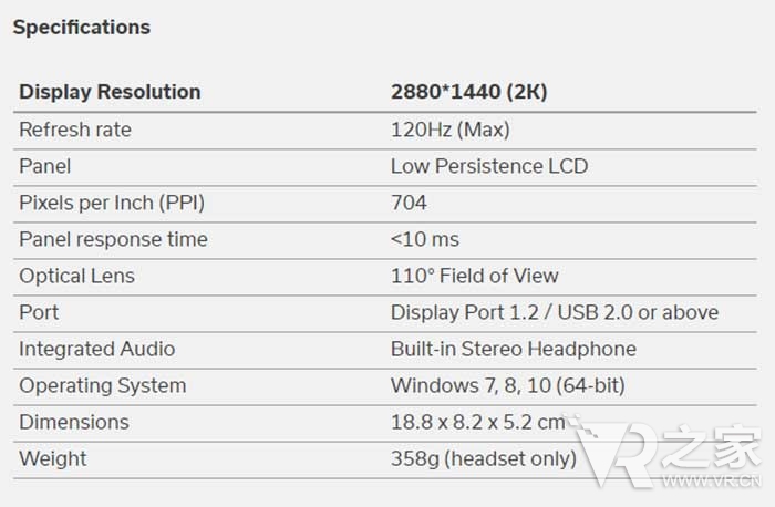 这款设备拥有2K(2880*1440)显示屏,110度视场角,内置耳机,设备重量在358g,Blubur S1定位高端市场,其零售价格为449美元。