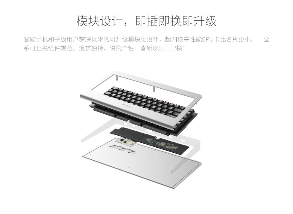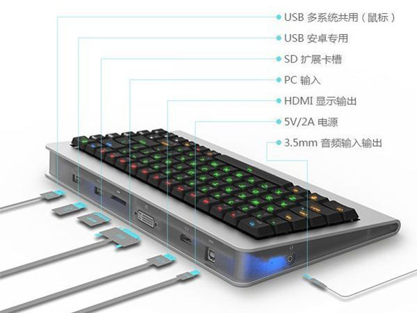 “键盘+平板”二合一想法比较新奇,而之所以称为智能,是因为oneBoard Pro+内置了Android 4.4.2系统,连上显示器可直接充当电脑使用,相当于键盘里还藏了一台没屏幕的Android平板。