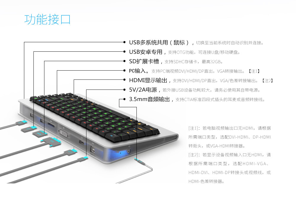 比较有特色的是一键切换功能,连上PC当键盘使时,按下切换键等待2-3秒切到Android系统,不仅改变画面输出,鼠标控制也会随之切换。