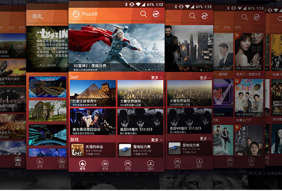 内容方面,Pico与蓝鳍鱼、Archiat、天舍软件等国内外游戏开发商达成合作,依托为其量身打造的虚拟现实应用平台:PicoVR,专享海量游戏、影视资源;目前已经有《射手》《最终战区》《Deep space battle》《LamperV》《Waddle Home》《DarkNet》等游戏。Pico也与华数TV共建VR视频专区,影视目前以每天十部的数量增加。
